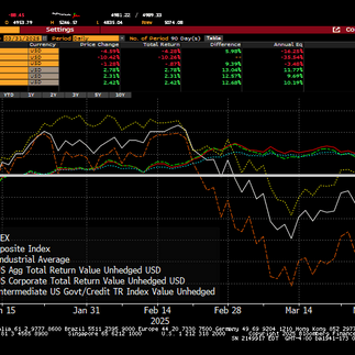 Happy Spring, everybody. There has been some big shifts within fixed income and fixed income is off to a great start in the first quarter. Full disclosure, we are doing this video on the day after the reciprocal tariffs actually came through. So we are seeing Treasury prices sharply higher, and we're seeing stock markets and risk markets sharply lower. Let's dive in on the first quarter. Almost all market sectors of fixed income seem to have a precursor to tariff day yesterday. There's been some foreshadowing in the first quarter. Treasuries were up. Treasuries were broad. Treasuries were up about 3% across the board. Interestingly enough, corporate bonds were also up with lower rates, but not as much as treasuries, because spreads started to widen. Historically, spreads are still very low. Risk premium spreads are still very low, but they did start to waiver a little bit in the first quarter. Municipal bonds, on the other hand, they kind of just treaded water, and it was basically because of March. What happened in March is there was a very big technical factor in the fact that there was a lot of supply to the market and not a lot of maturity, so not a lot of buyers to take up that supply. In addition, there was some talk from the administration about the tax exemption, which came and went. Also, state and local governments are having some issues with how the tariffs are going to affect them. Munis were basically flat for the quarter, which actually makes munis pretty attractive as an asset class right now. One other asset class - high yield, while it was up, it wasn't up as much as investment grade, so you can see the lower quality of the bonds didn't perform as well, so high yield was up just over a percent.