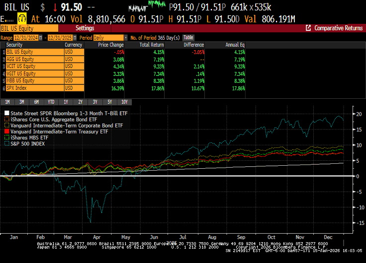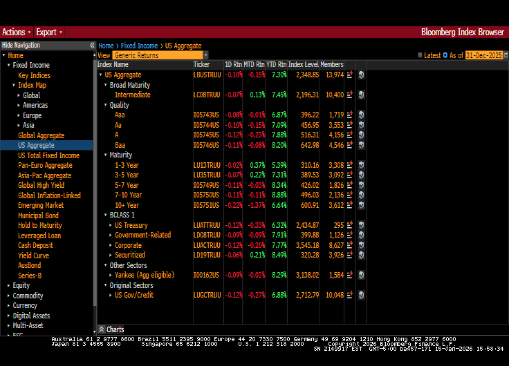 Happy New Year to everybody. The short answer to your question is definitively yes. Fixed income markets had a great 2025, the best since 2020. And guess what? In terms of this decade, fixed income has not been doing well. So to see both the aggregate and intermediate markets in high-grade fixed income return in the area of 7%, that's a really good figure. Now, granted, I know we have had three really strong years of equity returns. So again, fixed incomes in the backseat versus sectors like equities and even gold in the past year. But still, this return shows asset allocators why there are still a reason for bonds in your pie charts, in your asset allocations. A good way to look at fixed income returns is fixed income versus cash. Because if you think of cash, cash is a one-day fixed income or very, very short fixed income. And cash returns somewhere in the range of 4.00% - 4.25% in a total return since in 2025. So to get 300 basis points over that just by moving out in terms of duration, in terms of credit quality, that is a pretty good return and we expect that to continue into 2026.